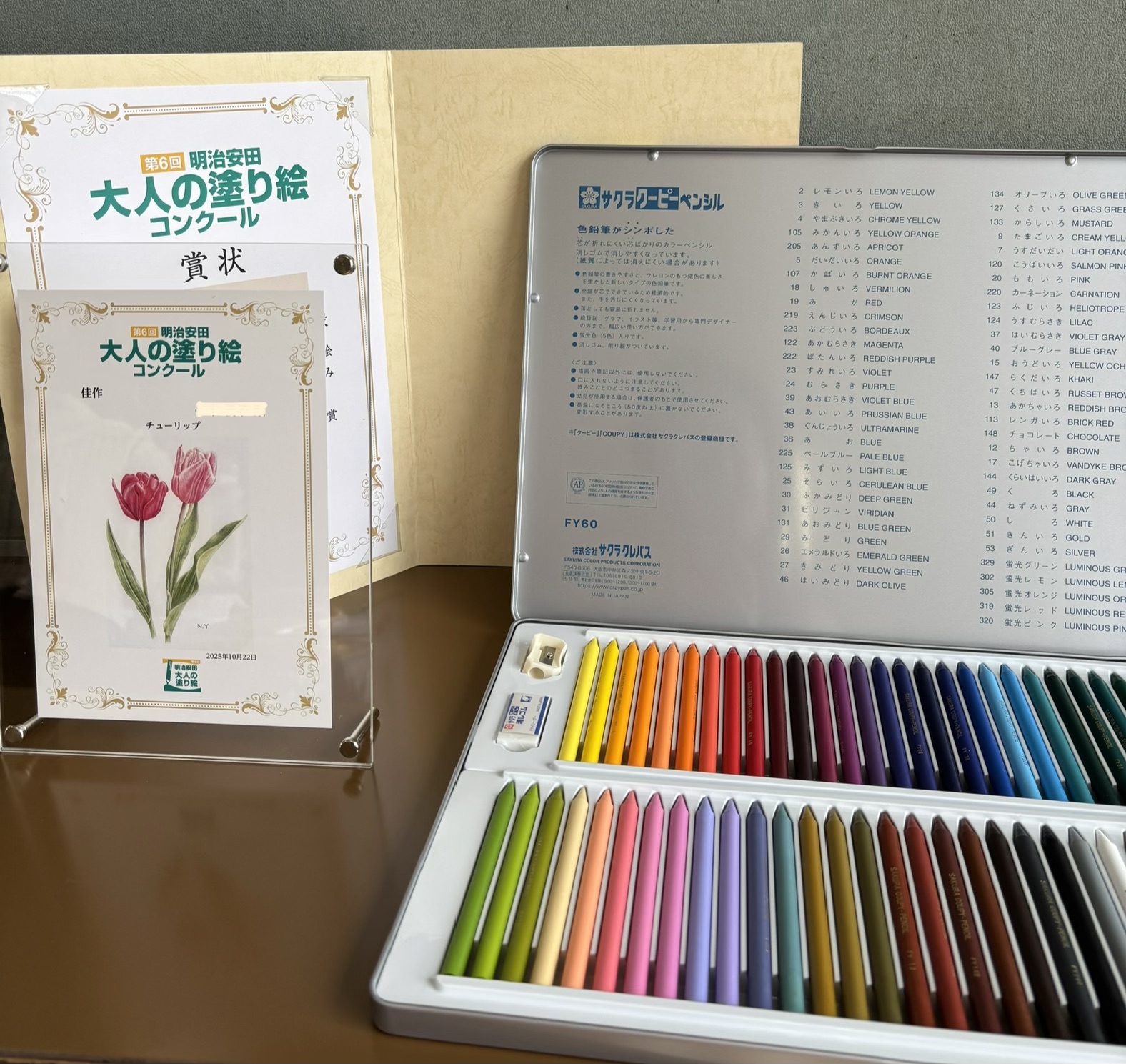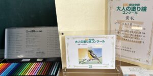 教室では、これまで河出書房の大人の塗り絵コンテストに応募していましたが、今回は、明治安田のコンクールにも挑戦しました。